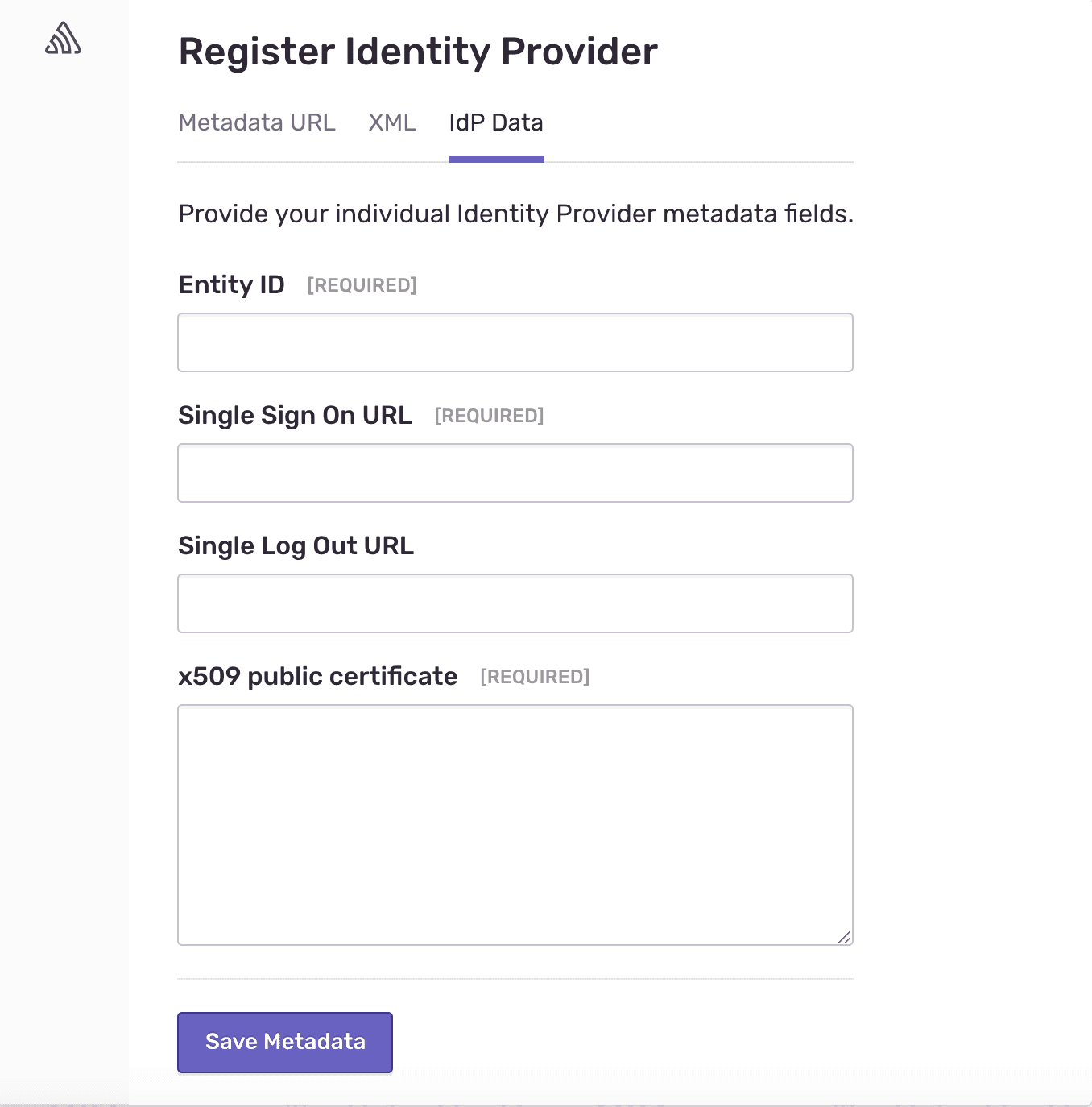 There are three distinct methods for registering your IdP with Sentry: Metadata, XML, and data fields. Each method is broken down below, and will produce the same end result.