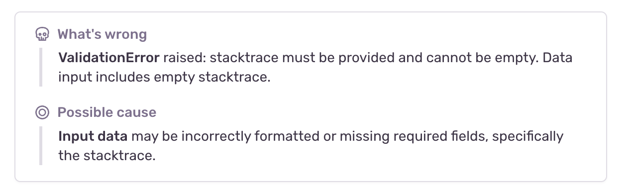 The Issue Summary provides a quick overview of an issue by highlighting key insights taken from event and issue level metadata. You'll see a quick overview of what's going wrong in the Solutions Hub in the sidebar: